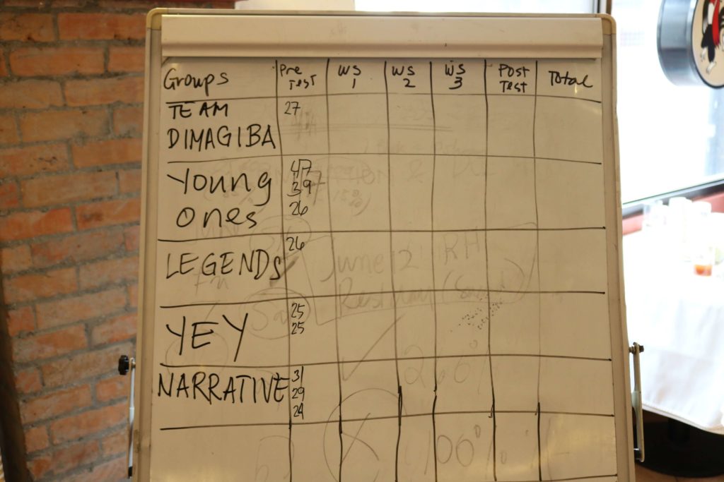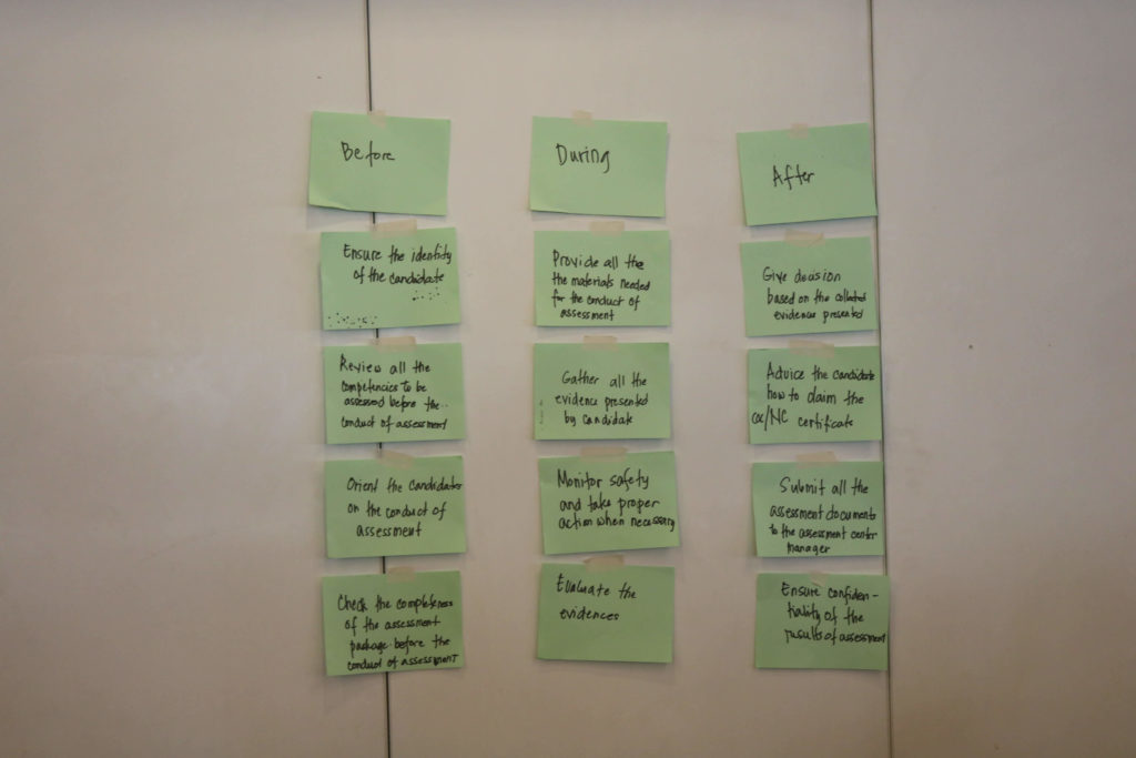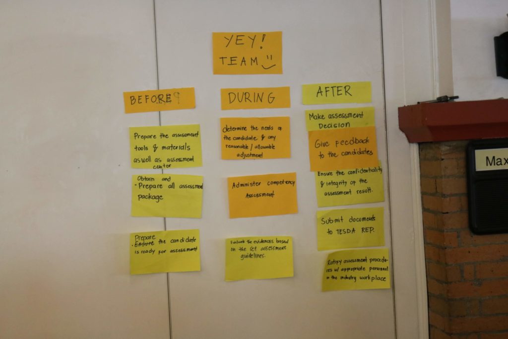 During the workshop, the participants were grouped and challenged through various activities to ascertain their mastery of the assessment procedures.